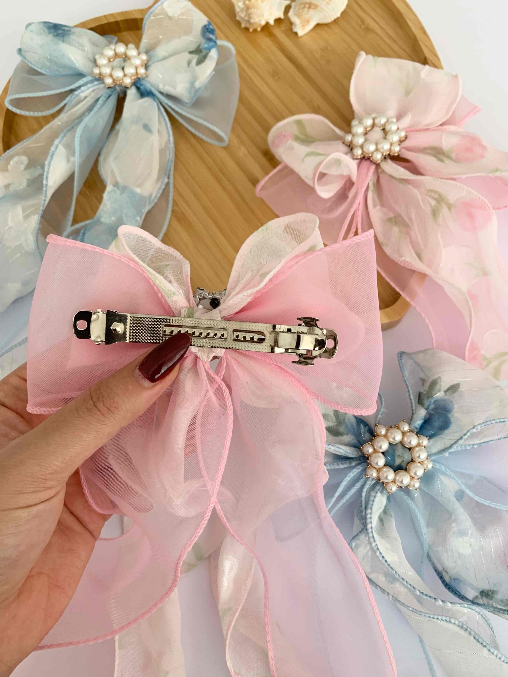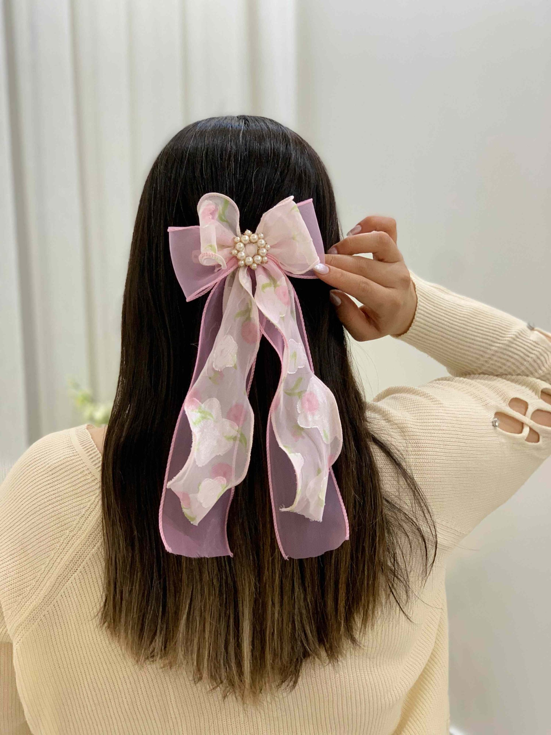 گیره فرانسوی پاپیونی حریر طرح دار